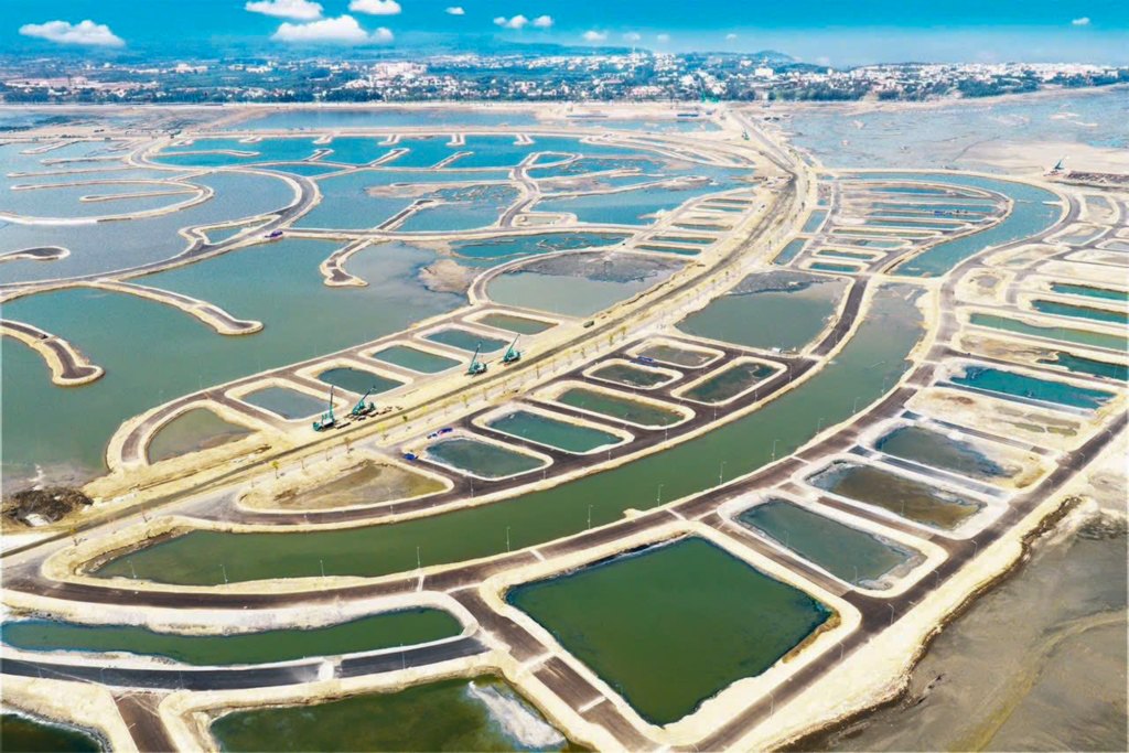 Nhìn từ trên cao, công trường Vinhomes Cần Giờ đang thay đổi từng ngày. Hệ thống đê bao chắn sóng và hạ tầng kỹ thuật phân khu đang được triển khai đồng bộ. Sau lễ khởi công hồi tháng 4/2025, tiến độ thi công thần tốc đã biến vùng đầm lầy ven biển thành hình hài của một đô thị nghỉ dưỡng.