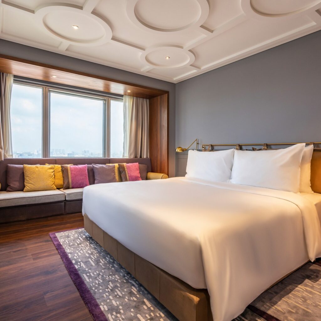 Khách sạn gồm nhiều tầng phòng nghỉ và khu tiện ích với phong cách thiết kế trẻ trung, sáng tạo, nổi bật với các không gian nội thất nghệ thuật, khu lounge, nhà hàng và hồ bơi ngoài trời. Dự án mang đến trải nghiệm lưu trú độc đáo ngay giữa trung tâm thương mại và tài chính sôi động của thành phố.
