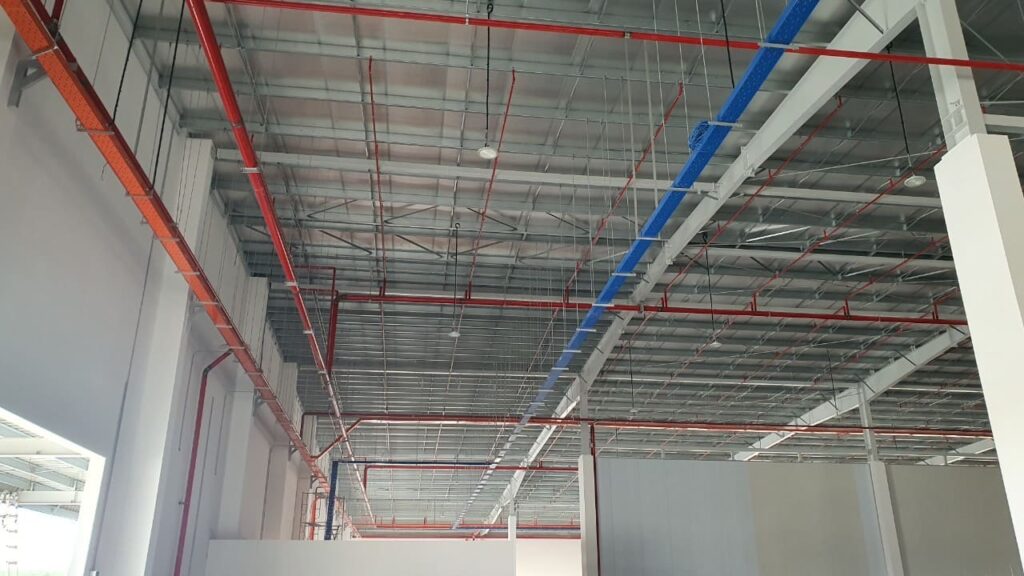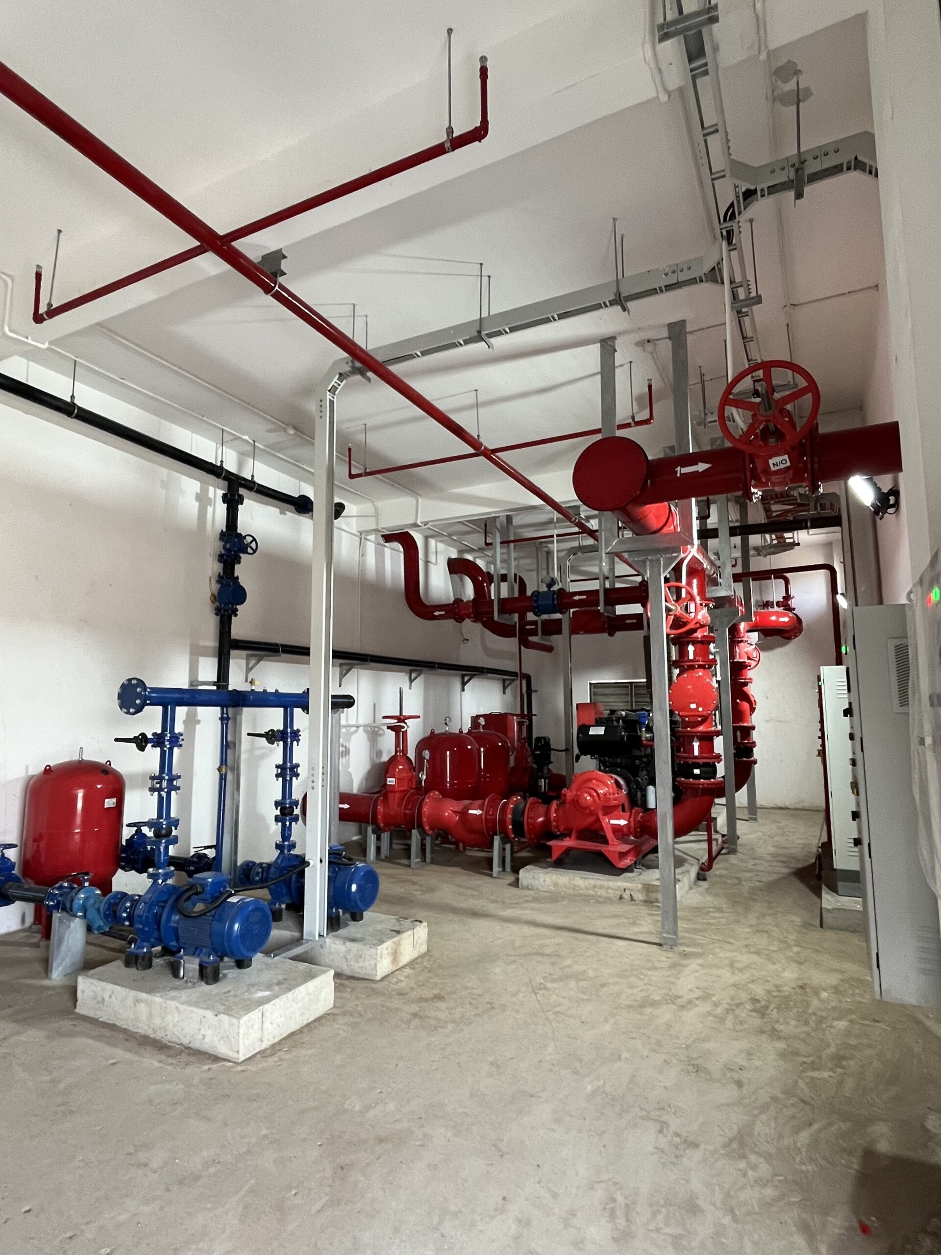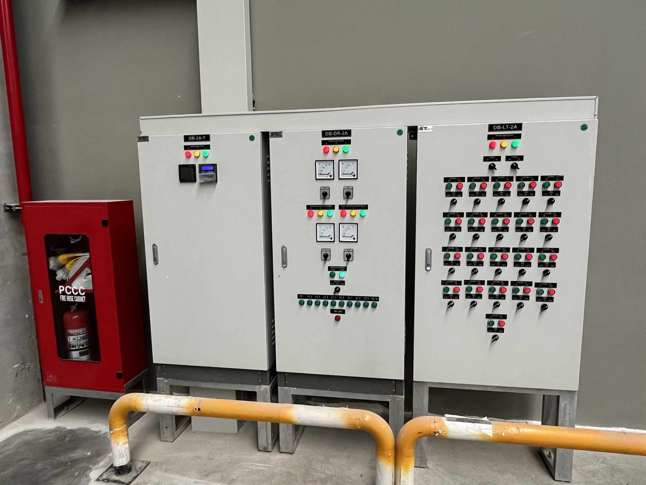 Hệ thống điện và phòng cháy chữa cháy (PCCC) của công trình được thiết kế và thi công đồng bộ nhằm đáp ứng các yêu cầu nghiêm ngặt về an toàn vận hành trong môi trường sản xuất. Hệ thống điện đảm bảo cung cấp nguồn điện ổn định cho toàn bộ dây chuyền sản xuất, chiếu sáng và thiết bị kỹ thuật; trong khi hệ thống PCCC được triển khai theo các tiêu chuẩn an toàn, góp phần kiểm soát và phòng ngừa rủi ro cháy nổ, bảo vệ con người và tài sản trong quá trình hoạt động của nhà máy.